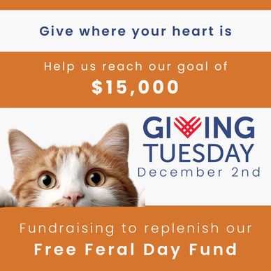 This Giving Tuesday, now thru December 2nd, we are fundraising specifically for our Free Feral Spay & Neuter Day Fund. Help us reach our goal of $15,000! This will allow us to offer up to 6 Free Feral Spay and Neuter Days in 2026.